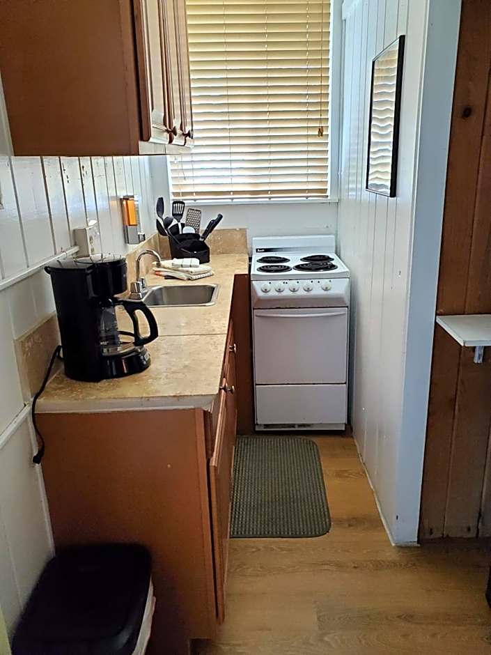 This studio has a refrigerator, microwave, and coffee machine with a toaster. A private bathroom and a flat-screen cable TV are also included.